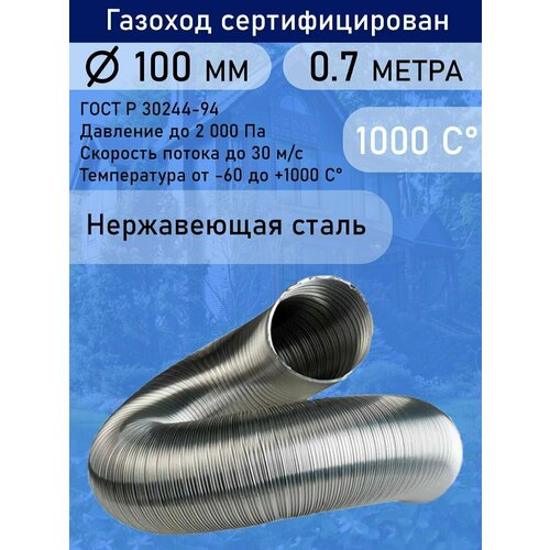 Газоход гофрированный из нержавеющей стали (длина 0,7 метра) D 100