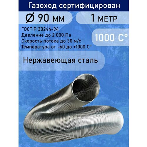 Газоход гофрированный из нержавеющей стали (длина 1 метр) D 90