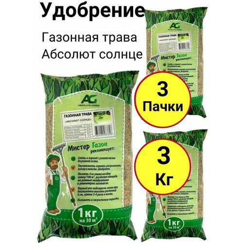 Газонная трава Абсолют солнце, 1кг, Абсолют грин - 3 пачки