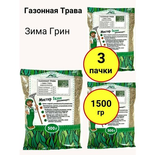 Газонная трава Зима грин, 500 грамм, Абсолют грин - 3 пачки