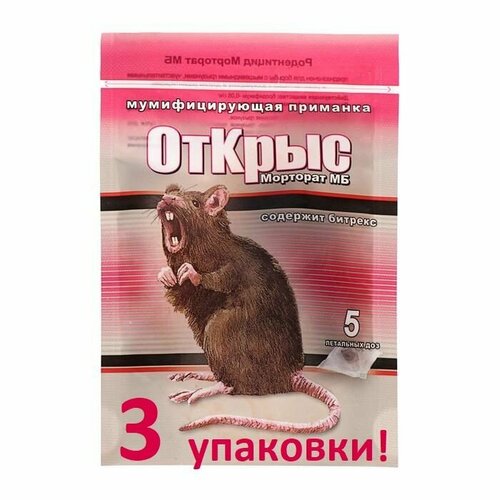 ОтКрыс Морторат МБ (5 доз) Средство, отрава для крыс и мышей, приманка для уничтожения грызунов 50 г (3 штуки)