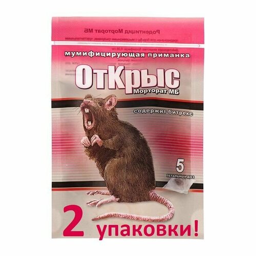 Средство, отрава против крыс и мышей "ОтКрыс Морторат МБ (5 доз)", приманка для уничтожения грызунов 50 г (2 штуки)