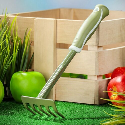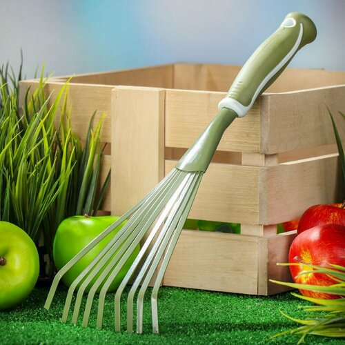 Грабли веерные, сталь, 40.5 см, Worth, рукоятка резиновая, зеленые