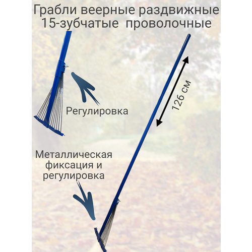 Грабли Веерные 15-зубые проволочные с алюм/черенком раздвижные фиксатор пласт. цанговый Форсаж