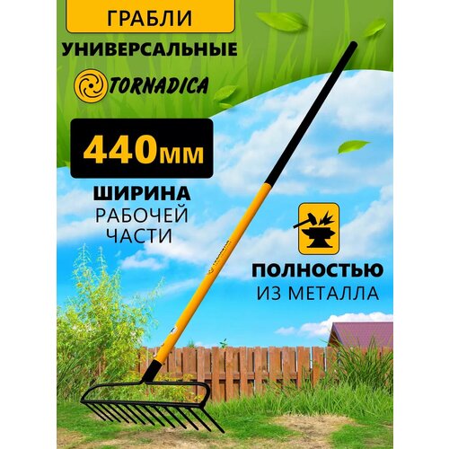 Цены на Грабли Универсальные ширина 44 см. длина 160 см. Торнадика / Грабли садовые с черенком стальные Tornadica в г. Москва