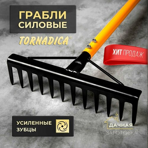 Силовые грабли Tornadica (Торнадика) с черенком, 12 зубьев, ширина 340 мм.