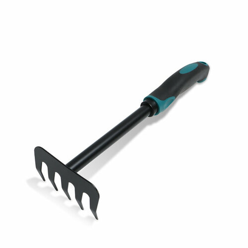 Малые прямые грабли для сада, 5 зубцов, длина 29 см, металл, комбинированная пластиковая ручка, Greengo