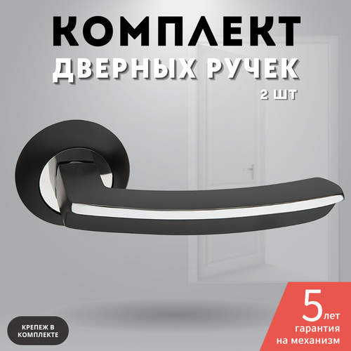 Ручка дверная межкомнатная, черная матовая с хромированной отделкой, комплект