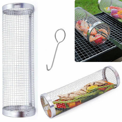 Круглая роликовая корзина для гриля из нержавеющей стали сетка для барбекю, овощей, рыбы и картофеля фри