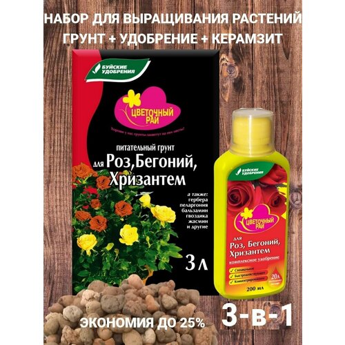 Набор (Грунт 3 л, удобрение + дренаж в подарок) для выращивания растений (садовых и комнатных роз, бегоний, хризантем).