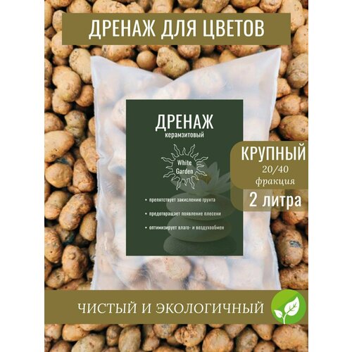 Дренаж для комнатных растений и цветов, крупный керамзит фракция 20+, 2 литра