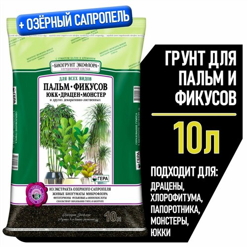 Грунт для фикусов и пальм гера, земля для фикуса Бенджамина, драцены и монстеры, папоротника и хлорофитума, калатеи, традесканции и декоративно-лиственных растений, 10 л.