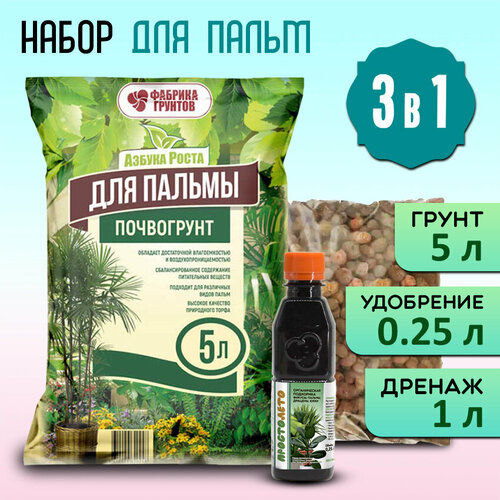 Набор для пересадки для пальм Грунт (5 л), минеральное удобрение и дренаж