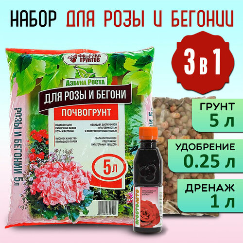Набор для Роз и Бегоний. Грунт цветочный (5 л), Удобрение, Дренаж