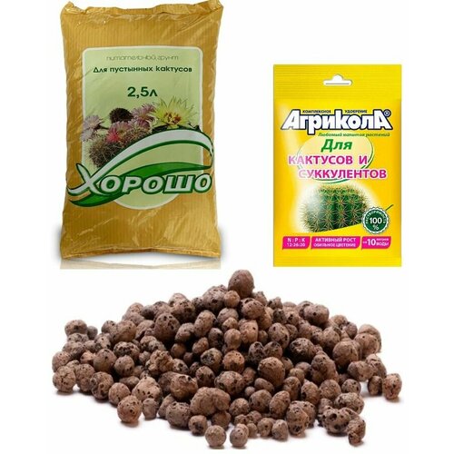 Набор для Кактусов. Грунт для растений 2,5 л, Удобрение, гранулы Агрикола и дренаж.