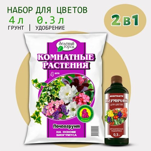 Зеленый город / Грунт для комнатных растений. Набор для пересадки растений: земля для цветов комнатных 4 л, удобрение органическое 300 мл