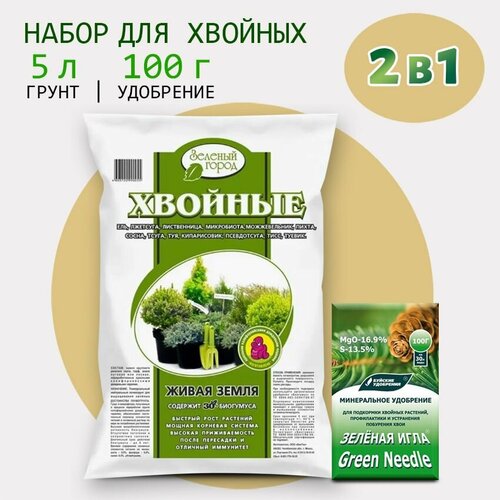 Зеленый город / Грунт для Хвойных 5 л, удобрение органическое 100 гр