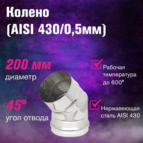 Колено нержавейка (AISI 430/0,5мм) 45 градусов (200)