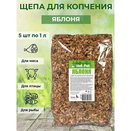 Щепа для копчения Яблоня из натуральной древесины для мяса, птицы, рыбы , универсальная 5 штук по 1 л