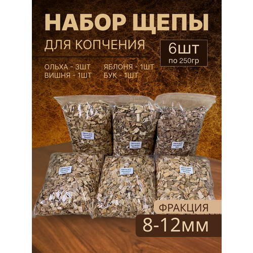 Щепа для копчения Набор Ольха-3шт Яблоня Вишня Бук, фракция 8-12 мм для домашнего копчения мяса, птицы, рыбы, сыра