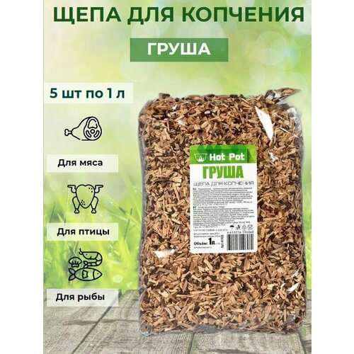 Щепа для копчения HOT POT "Груша", для холодного копчения, 5 штук по 1 литру