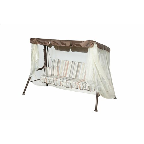 Садовые качели "Ранго Премиум" 3х местные, нагрузка до 350 кг, с москитной сеткой, регулируемая спинка, бежевый/коричневый мс 3270