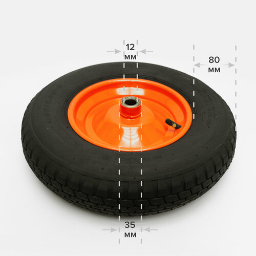 Колесо для тачки садовой, бескамерное, 1-колёсной (4.80 / 4.00-8), втулка 12 мм