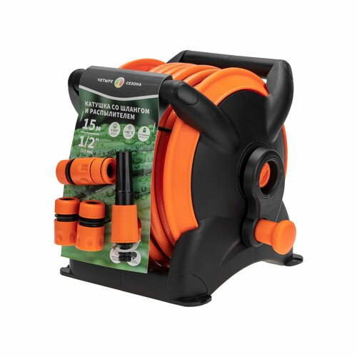 Катушка со шлангом Четыре Сезона 3 коннектора, 1 распылитель, 1/2", 15м оранжевый