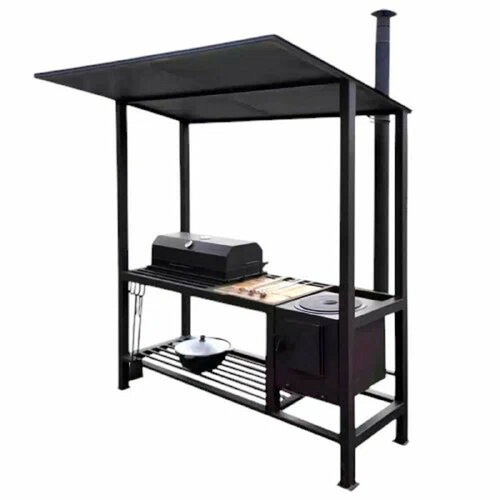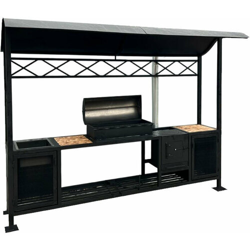 Мангал Лофт–1 с печью, дымоходом и крышкой-барбекю, 190 x 60 x 235 см