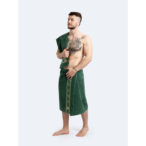 Килт для бани и сауны, 100% Хлопок. Подарочный набор. Оливковый.