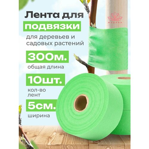 Садовая лента для подвязки зеленая 60гр/м2, ширина 5см, длина 30м 10 штук