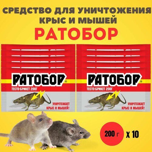 Средство ( отрава ) от грызунов, крыс и мышей, Ратобор, 200 г*10 шт.