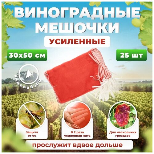 Мешочки для винограда Усиленные, сетки от ос и других вредителей 30х50 с завязками 25 шт