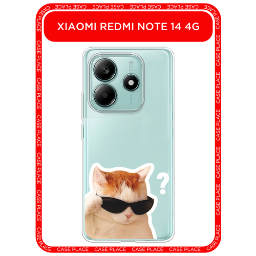 Чехол на Xiaomi Redmi Note 14 4G / Редми Нот 14 4G с принтом Кот в очках, прозрачный
