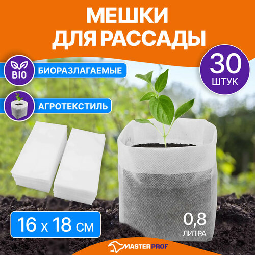 Мешки пакеты текстильные горшки стаканчики для рассады биоразлагаемые MasterProf, 160 х 180 мм, агротекстиль, 30 шт.