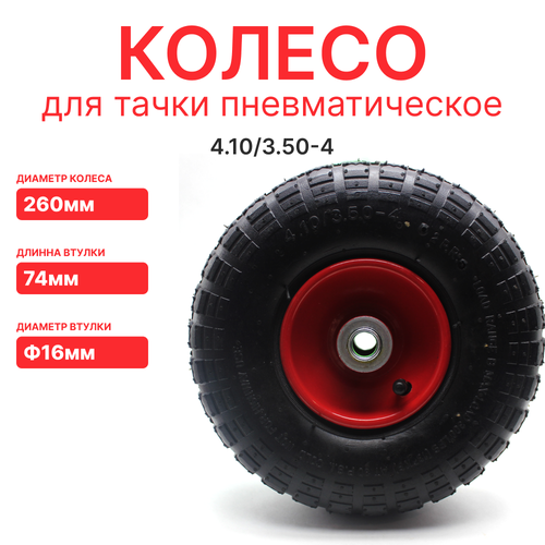 Колесо тачки садовой 4" 3,50-4" (под ось d=16мм, длина 55мм) несимметрич. ступица, подшипник, камера