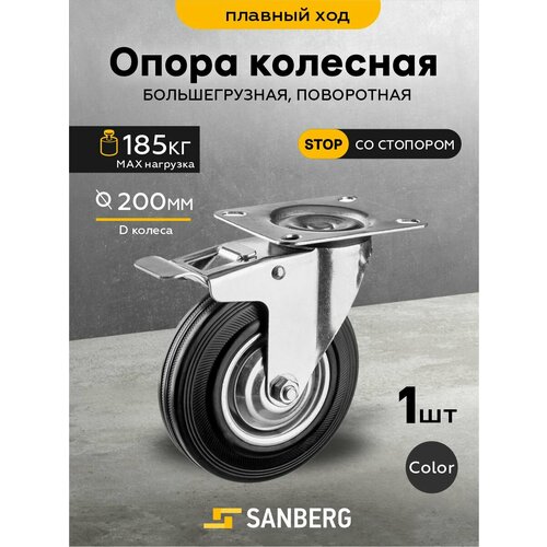Колесо мебельное поворотное с тормозом "Sanberg" большегрузное для тачки/тележки, стеллажей 200мм