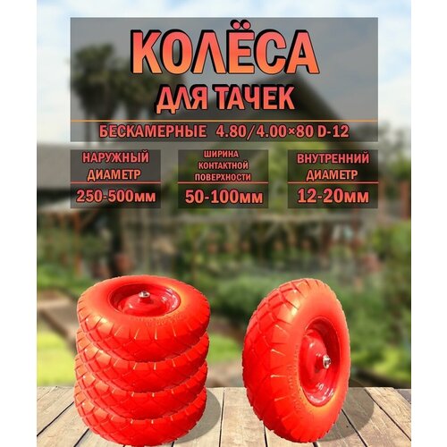 Колесо для тачки садовой бескамерное 1-колёсной (4.80/4.00-8) втулка 12mm запасное