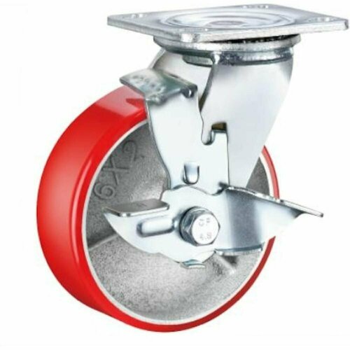 Большегрузное полиуретановое колесо поворотное с площадкой и тормозом SCPB 63 (150 мм; 360 кг) А5 1000111
