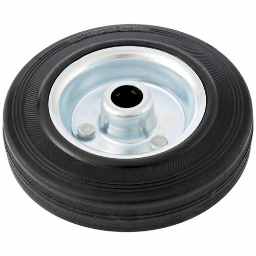 Контактная поверхность выполнена из термопластичной серой резины, поэтому колесо может применяться на различных покрытиях, долгое время сохраняя рабочие качества. Резиновая шина не оставляет следов — колесо можно использовать в помещениях со светлыми полами. Подшипниковая втулка обеспечивает легкое вращение и продлевает срок службы изделия.