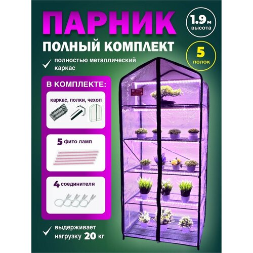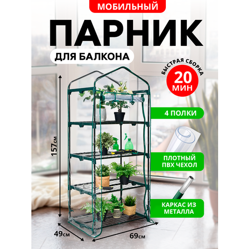 Парник/стеллаж для балкона, для рассады, растений и цветов, металлический 49х69х157 см разборный 4 полки Урожайная сотка