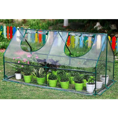 Теплица, с форточками, каркас из стальных труб, 182 см x 92 см x 49/93 см