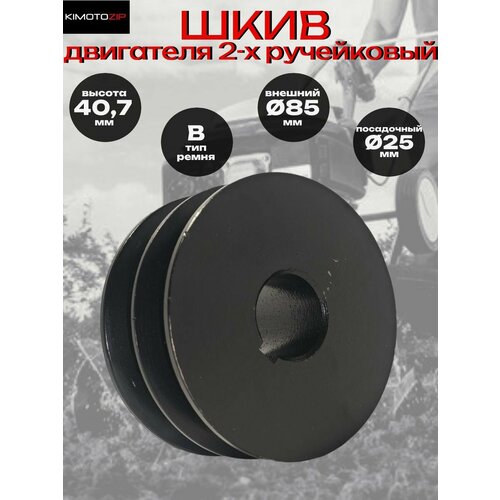 Шкив двигателя культиватора 2-х ручейковый, 25*85мм, арт. 177006
