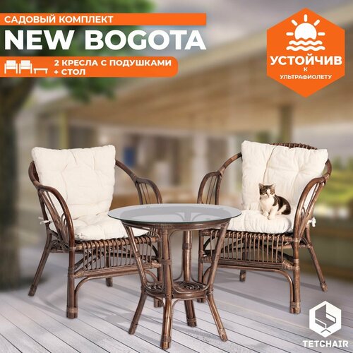 Комплект садовой мебели из натурального ротанга NEW BOGOTA (2 кресла + диван + стол) с подушками, walnut (грецкий)