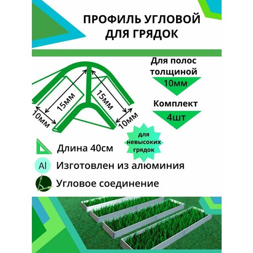 серый, серебристыйКомплект алюминиевых соединительных профилей для сборки грядок в теплице и открытом грунте. Профиль расчитан на толщину материала (шифер, цсп и др.) не более 8мм! Соединительный профиль разработан таким образом, чтобы сборка грядки была максимальна проста и удобна покупателям. Сборка грядки: занимает не более 30 минут, без саморезов и не требует специальных инструментов Н-образный профиль служит для соединения боковин грядки. Высота профиля 50 см, позволяет заглубить его в землю и создать дополнительные опоры для грядки. Увеличенная глубина пазов 2см. Профиль изготовлен из алюминия, который имеет ряд преимуществ:-долговечность-прочность и надежность;-устойчив к коррозии и внешним воздействиям