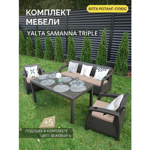 Комплект садовой мебели YALTA SAMANNA TRIPLE (Ялта Ротанг-плюс) + 5 бежевых подушек (искусственный ротанг (пластик)