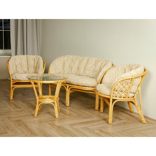 Комплект плетёной мебели с мягкими подушками 4 предмета