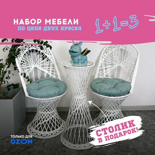 Комплект кресел "Provance" с голубыми подушками + подарок - столик