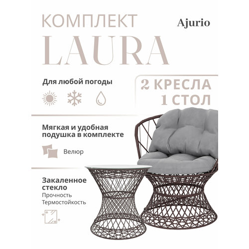 Комплект садовой мебели из поликомпозита "Laura" с кремовыми подушками, Набор мебели для сада, Ajurio