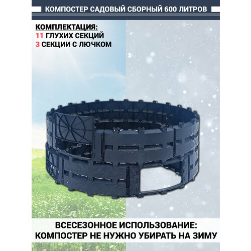 черныйКомпостер садовый без крышки для дачи и сада объем 480 л - представляет собой пластиковый контейнер, предназначенный для сбора отходов растительного происхождения на земельном садовом участке, обеспечения их гниения и преобразования в удобрение. Компост – удобрение для улучшения качества почвы. Идеально подходит для дачи, огорода, для сада, частных домов и участков. Компостер садовый не займет много места и станет настоящим помощником, который не только поможет поддерживать чистоту на участке, но и создаст полезный для земли продукт-компост, готовое удобрение для почвы, для растений, для цветов. Простота сборки, его легко перенести на любое другое место на Вашем участке. Надежность, практичность, разборная конструкция, легкий, прочный, гибкий, универсальный, черного цвета. Морозоустойчивый пластик. Можно использовать круглый год. Принцип работы ящика для компостера прост. Сверху забрасывают органические пищевые отходы, скошенную траву, сорняки, также сырьем для компостирования выступают любые части растений,